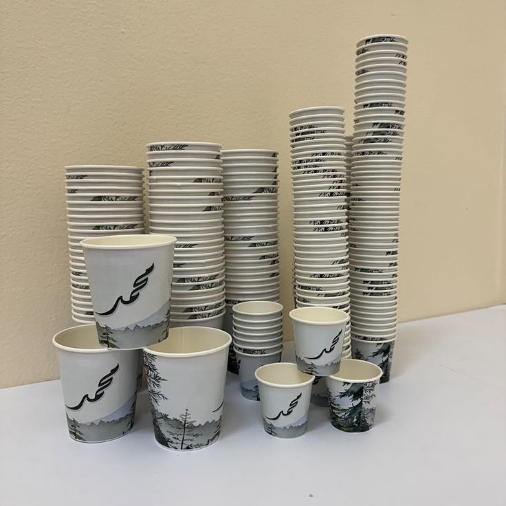 أكواب ورقية مطبوعة بأعلى جودة لتضيف لمسة احترافية لأعمالك أو مناسباتك. مثالية للمقاهي، الشركات، أو الهدايا الترويجية،